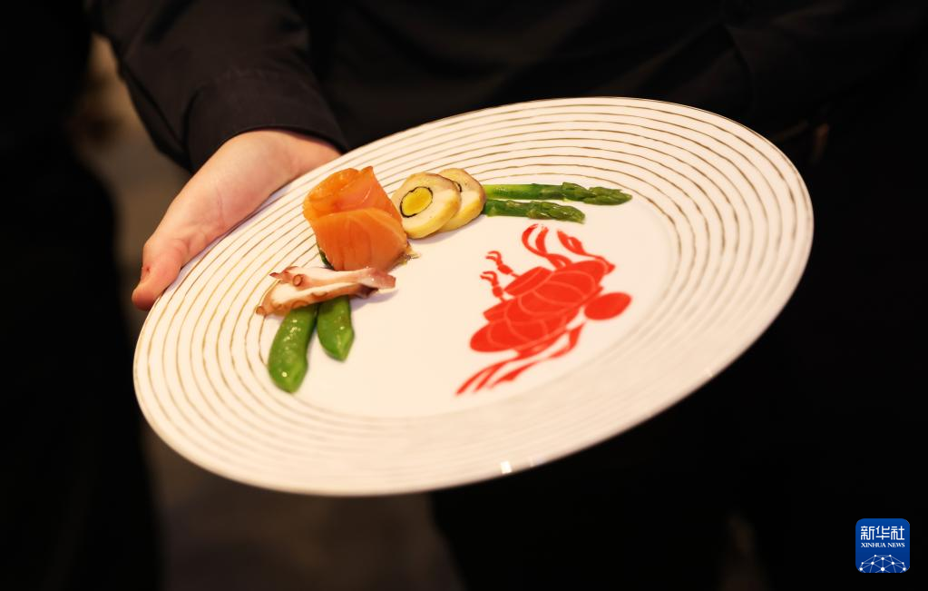 1月23日,中国驻法国大使馆在位于巴黎的联合国教科文组织总部举办“中法美食文化之夜”活动。这是活动中,工作人员端上佳肴。新华社记者 高静 摄