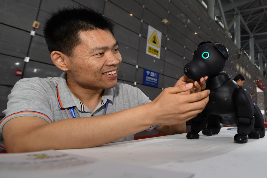世界制造业大会上展示的一款面向家庭场景的仿生机器狗。新华社记者 张端 摄
