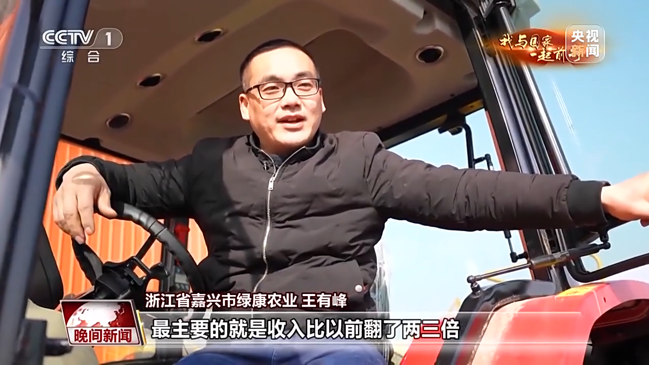 浙江省嘉兴市绿康农业 王有峰:看我现在穿着皮鞋干活,一天下来还是干干净净的,最主要的是,收入比以前翻了两三倍。