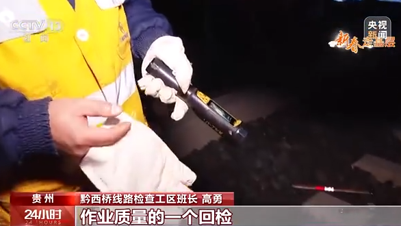 黔西桥路检查工区工长 于世明:真的就是痛并快乐着,因为没法和家里人团圆的话,确实是一个非常遗憾的事情,但是如果说通过我们的工作,能够让更多旅客按时回到家,其实心里也觉得特别欣慰,感觉自己付出还是有价值的。