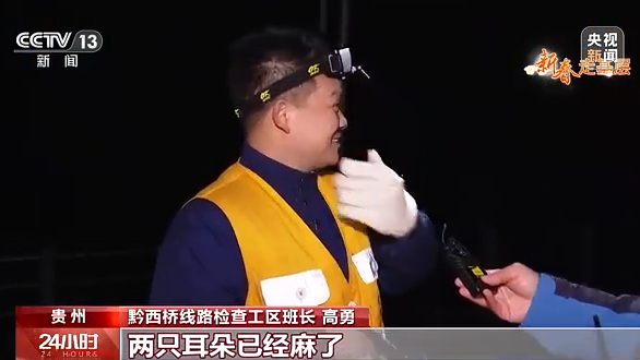 黔西桥线路检查工区班长 高勇:两只耳朵已经麻了。