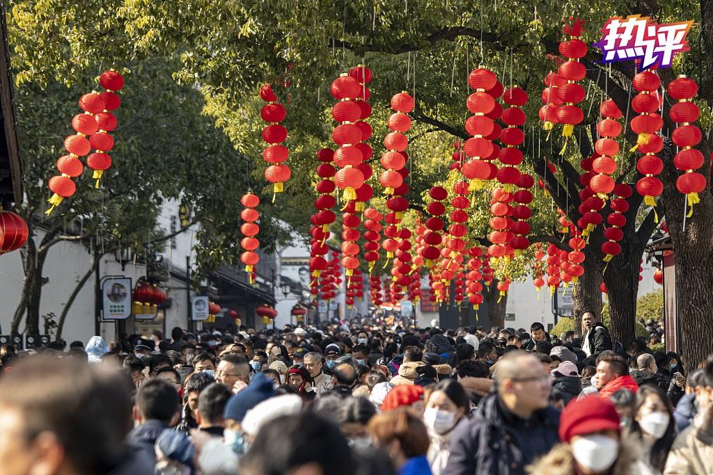 借助手机信号大数据能够发现,春节期间最火热商圈不在北京、上海,而在长沙黄兴南路步行街,人流量最多,同比增幅也最大,老字号新国潮嘉年华、网红地标打卡地等吸引大量顾客。从自贡灯会用彩灯还原孩子们画笔下的兔年,到多地的水上年市、乡村“村晚”、无人机表演,再到“醉美冰雪季”,创新创意、潮流风尚体现在欢度新春的细节里。创新供给驱动消费升级迭代,我国旅游消费特点正从“大规模、标准化”转向“分众化、系统化、品质化”。每一项增长,都尽显信心和潜力,彰显中国经济的韧性活力,指向人民对美好生活的向往。