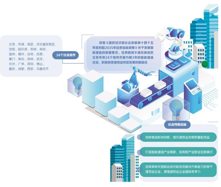 拥有工业化和数字化基础的发达制造业是智能建造试点城市的基础。此次公布的24个试点城市正是具备了这样的共同点。目前,很多试点城市的示范工程项目都在全过程应用了建筑信息模型(BIM)、物联网、人工智能、云计算及大数据等现代信息技术,以及造楼机、施工机器人等智能建造设备,促进了先进制造技术和现代信息技术与建筑业发展的深度融合。(中国建材报记者 陶璐璐)