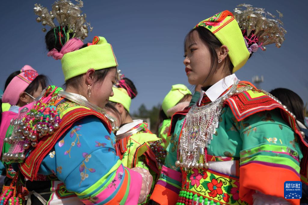当日是大年初八,在贵州省黔南布依族苗族自治州龙里县龙山镇中排村,各村寨的苗族群众欢聚一堂,举行一年一度的“跳月”活动,欢庆新春。“跳月”是当地苗族群众祈福风调雨顺、欢庆新春的传统民俗活动,也是苗族青年男女寻找意中人的大型社交活动。