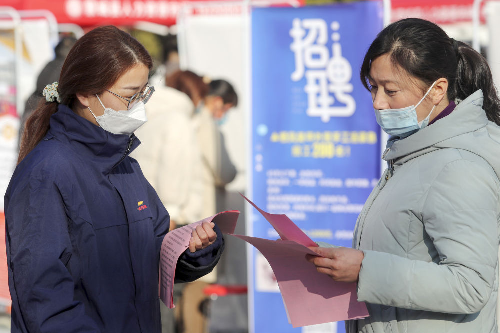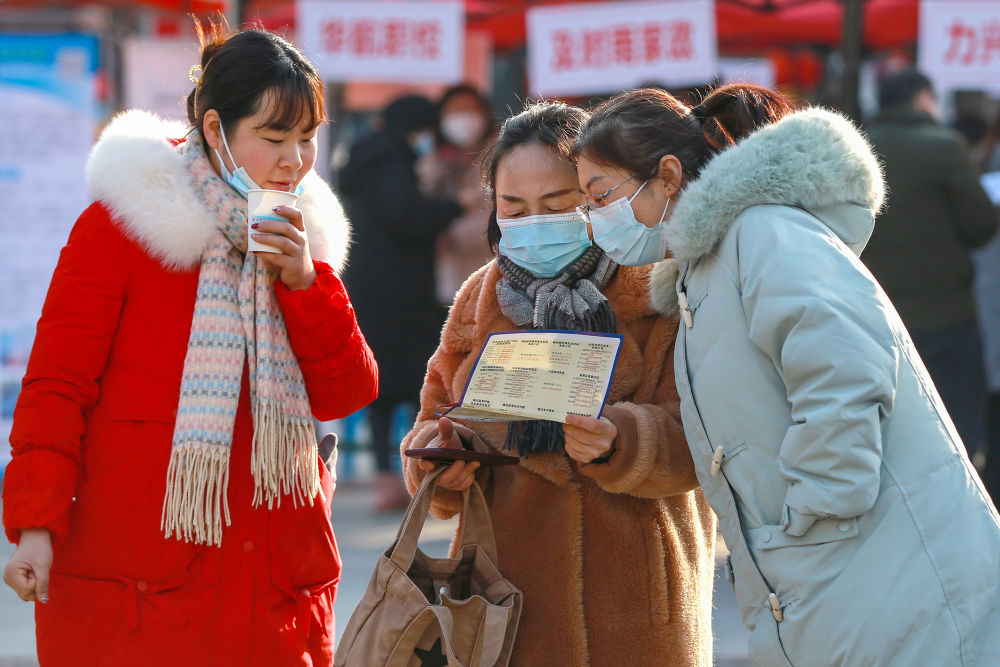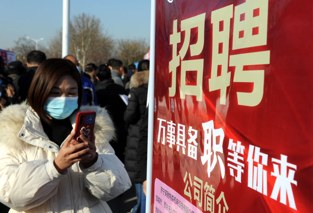 1月29日,求职者在山东省邹城市春风行动春季人才交流会上寻找就业岗位。新华社发(王愿生 摄)