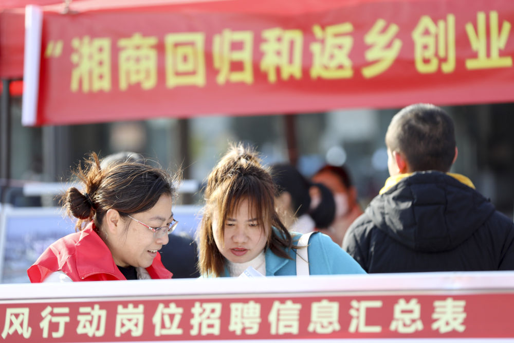 1月29日,求职者在湖南省永州市的新春招聘会上了解岗位信息。新华社发(何红福 摄)