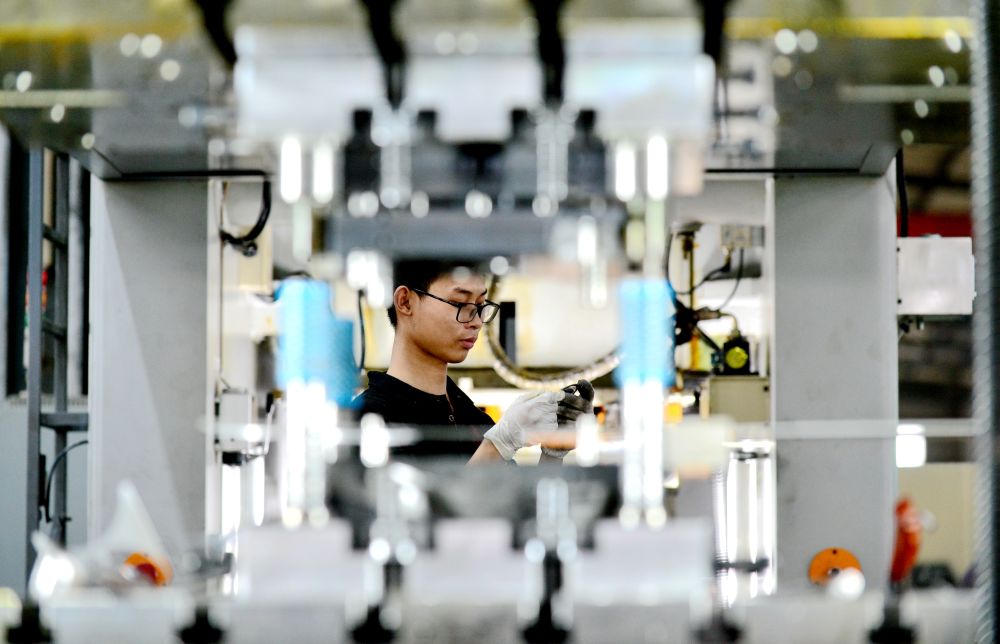 图为新河县一家汽车配件企业的工人在车间检测产品质量。新华社记者王晓 摄