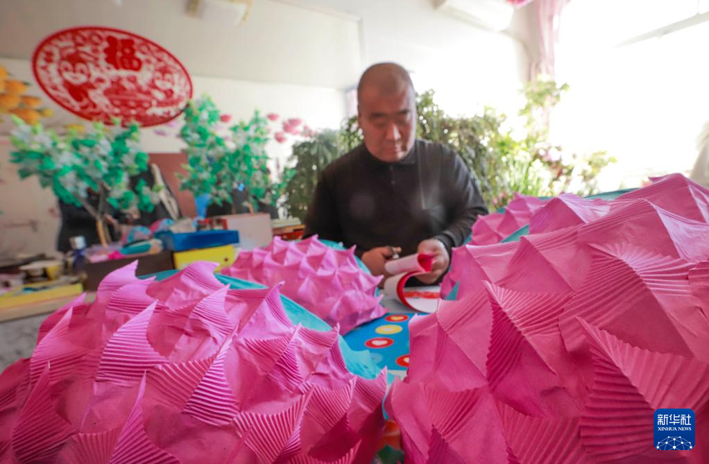 近日,河北省迁西县洒河桥镇的民间艺人们忙着赶制传统手工跑花灯,为元宵节演出做准备。迁西县传统跑花灯历史悠久,每逢元宵节期间当地民间艺人就会为村民演出,深受人们的欢迎。