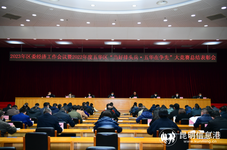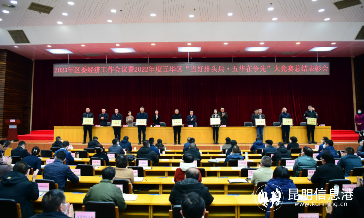 昆明信息港讯 记者王云 1月30日,五华区举行2023年区委经济工作会议暨2022年度五华区“当好排头兵·五华在争先”大竞赛总结表彰会,回顾全区2022年经济工作与大竞赛工作开展情况,表彰大竞赛红榜、产业发展先进集体和招商引资先进集体,并部署2023年经济工作。