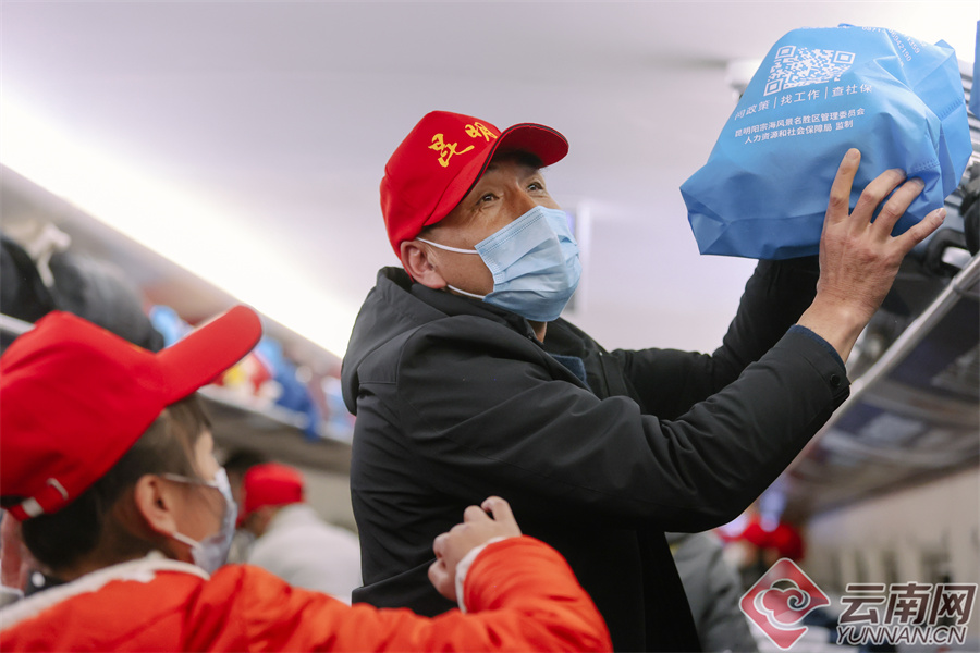 1月30日7时,一辆大巴车停在了昆明市东川区村民兰兴龙的家门口,伴随着父母不舍的眼神和殷切的嘱托,兰兴龙提着行李坐上了由市人社就业部门选派的专人专车,将他和其他工友从东川护送到昆明市高铁站。