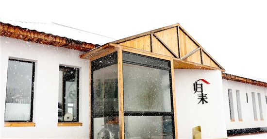 常嘉琳创办的民宿名为“归耒”,距离北大湖滑雪场车程15分钟。民宿从名字到风格,与当地周边村民开办的农家乐有明显区别。2021年12月初,民宿建成营业,有13间客房,另外还有雪友共享大厅、演艺吧、餐厅等。