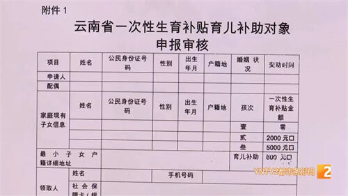 去年12月,云南省财政厅等多部门联合印发《云南省生育支持项目实施方案》,明确从今年1月1日起,对符合政策条件的家庭发放一次性生育补贴。近日,昆明已经有社区开始接受申请和咨询。
