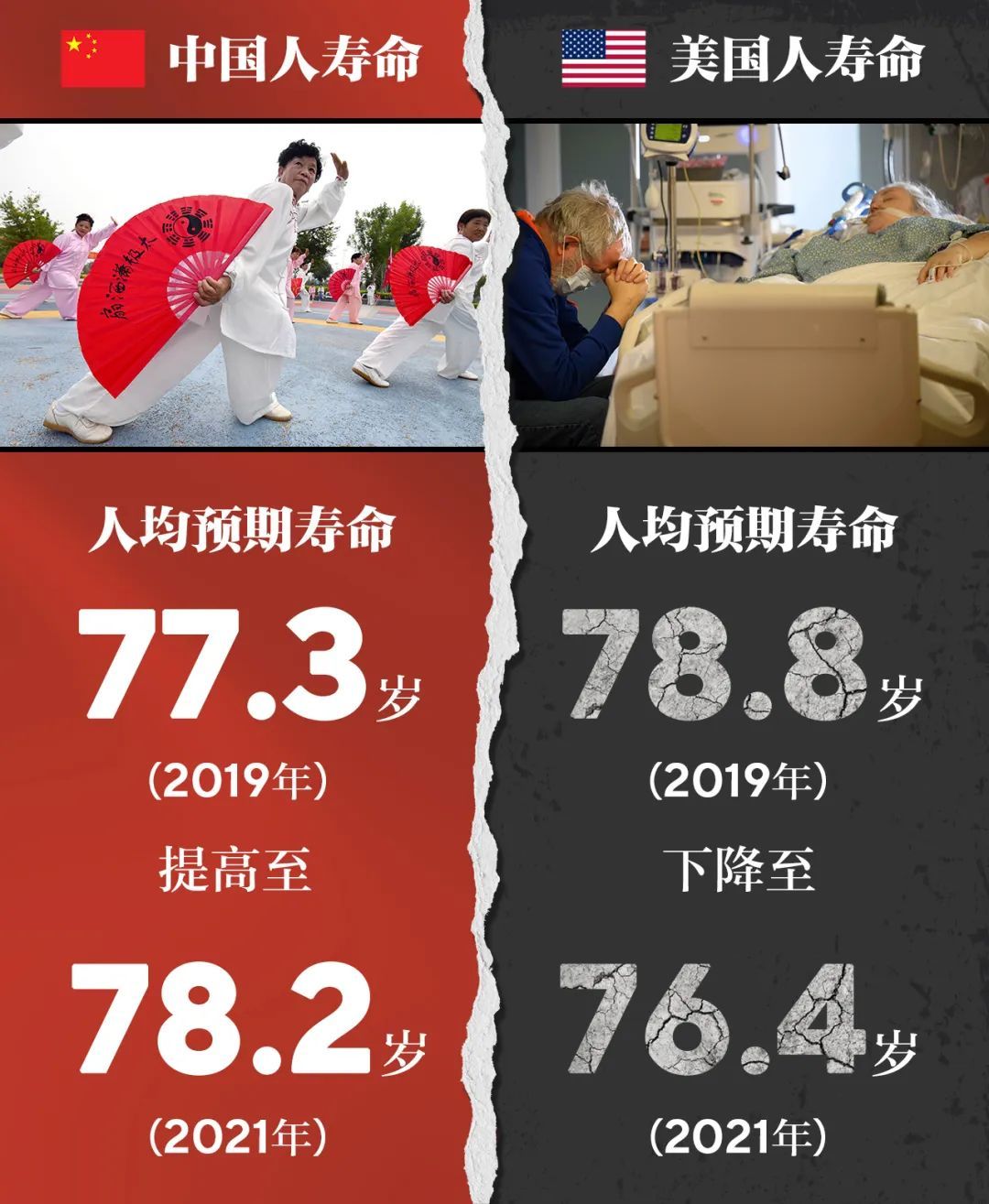 美国疫情防控始终被高度政治化,政客只关注政治私利,却无视民众生命健康,导致美国人均预期寿命持续下降。
