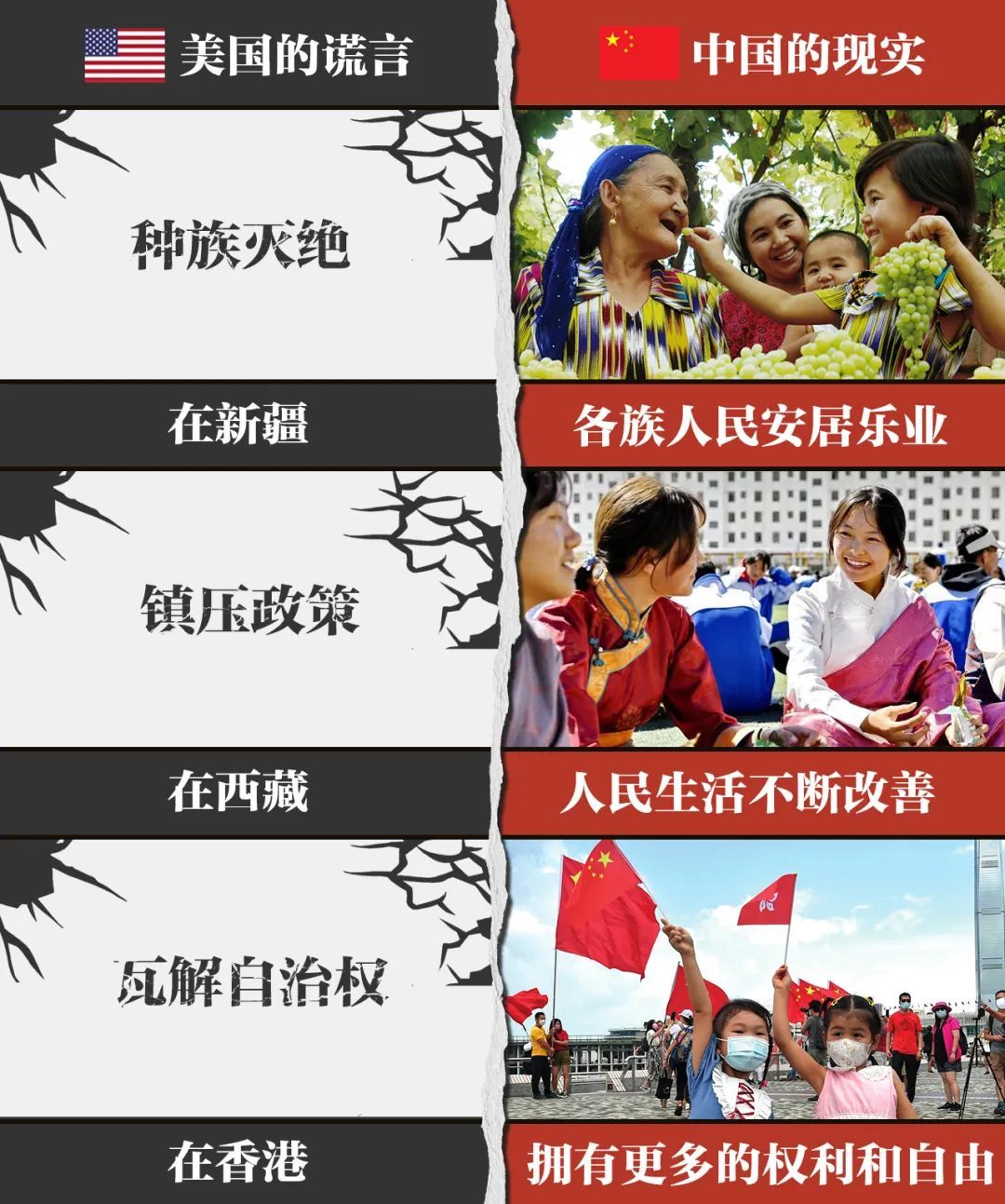 美国无端指责中国人权状况,编造新疆“种族灭绝”等世纪谎言,暴露其借人权问题干涉中国内政、危害中国稳定发展和民族团结的政治目的。