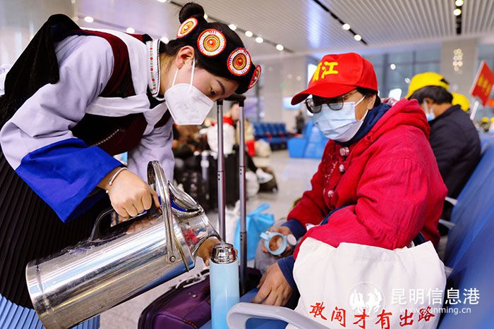 当天,丽江车站开辟绿色通道,设立候车专区,针对务工团体中大部分为纳西族、傈僳族、普米族、彝族等少数民族的实际,丽江站专门成立“少数民族志愿服务队”,将“金花”服务文化品牌与少数民族特色文化相融合,安排5名熟悉“纳西语”“彝语”“傈僳语”“白语”的客运员,在进站通道、候车大厅、金花服务台、站台等关键岗位,为有需求的旅客提供“民族语言+汉语”双语服务,让更多务工旅客感受到特色服务的温度。同时,车站指定专人手持多民族语言标识牌,在站台上引导务工旅客有序乘车。