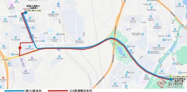 Z22路行驶路线去程按原线行驶至东绕城高速,经东绕城高速、龙辉路、经景路、顺通大道回原线行驶;回程按原线行驶至顺通大道,经顺通大道、经景路、龙辉路、东绕城高速回原线行驶。新增停靠经景路口(龙辉路)公交站。(云南网 记者段芃)
