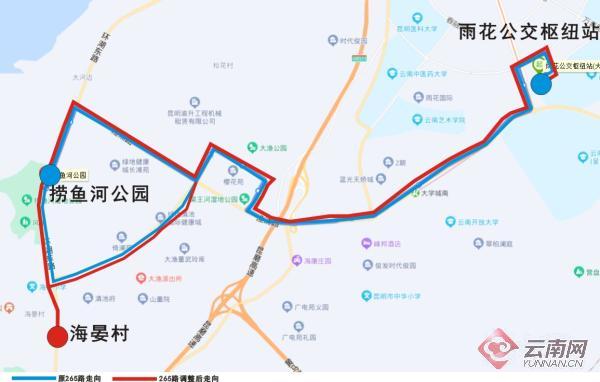 调整后,265路起终站由雨花公交枢纽站(大学城地铁站)——捞鱼河公园,调整为雨花公交枢纽站(大学城地铁站)——海晏村。