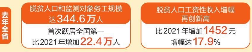 2月1日,记者从全省脱贫人口稳岗就业工作视频会议上获悉,去年全省脱贫人口和监测对象务工规模达344.6万人,首次跃居全国第一,比2021年增加22.4万人;脱贫人口工资性收入增幅再创新高,达9538元,比2021年增加1452元,增幅达17.9%。