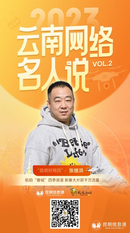 春节期间,辗转拍摄西山龙门、海埂大坝、湖滨西路等地,用“5000万+”播放量的成绩,为昆明持续上分,有网民评论称:刘亦菲带火了大理,张继洪带火了昆明。“2023云南网络名人说”第二期访谈嘉宾张继洪,即将为您分享立足短视频行业的独门秘籍,请拭目以待!