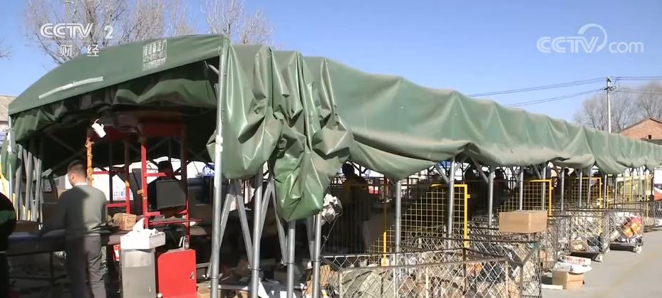 节后返工的快递员刘正玺也进入到忙碌状态。下午2时左右,一辆大货车进入网点开始卸货。