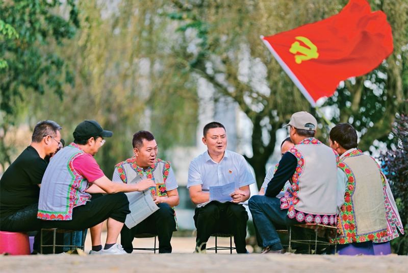 云南省曲靖市陆良县纪委监委以“清风讲坛”为载体,组织宣讲员通过面对面、互动化、通俗化的方式开展宣讲活动,推动党的二十大精神在基层落地生根。图为2022年10月26日,陆良县龙海乡小新村的彝族群众参加宣讲活动现场。 人民视觉 王勇/摄