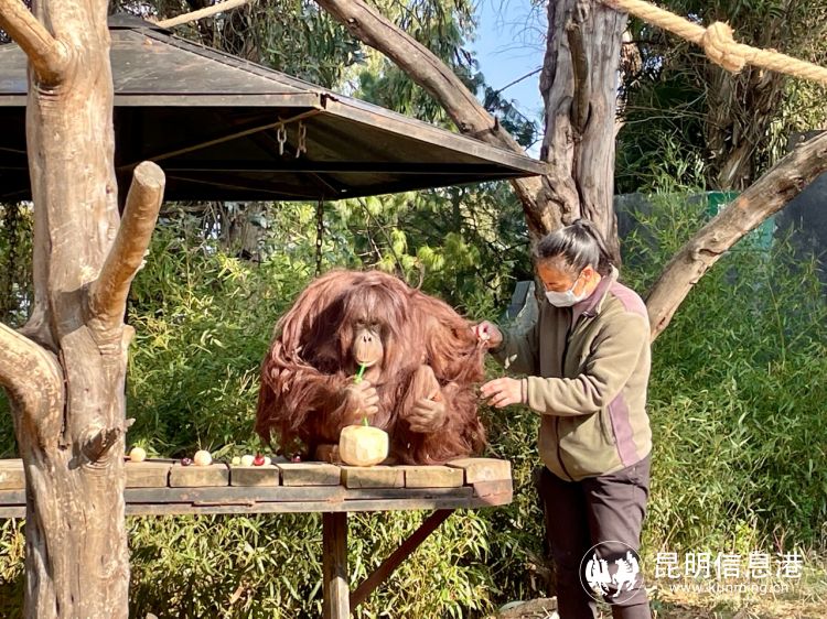 昆明信息港讯 记者段佳琪 “五仁元宵”“椰子元宵”“肉丸元宵”……2月4日,元宵节将至,云南野生动物园为园内的红毛猩猩、马来熊、老虎、鹦鹉等动物准备了以水果、肉等为原料制作的私人定制汤圆,让动物们享用美食度佳节。