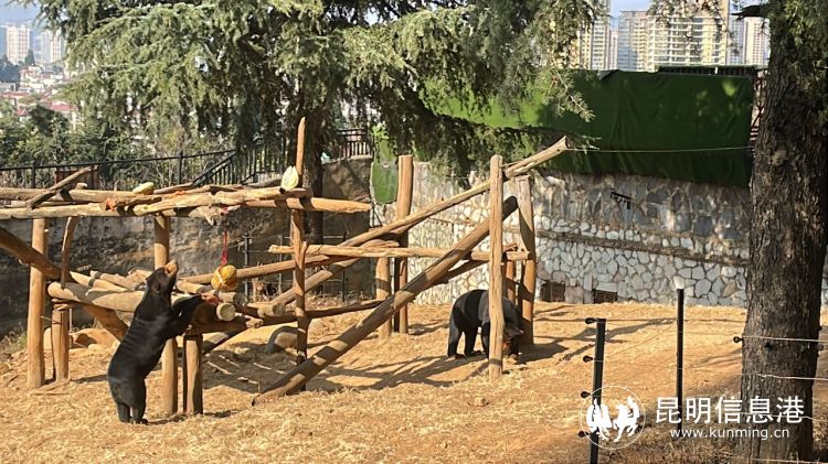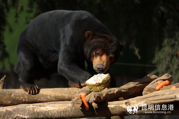 生活在东南亚和南亚一带的马来熊,是体型最小的熊科动物,生活在热带雨林中的它们喜食水果,所以园方选用了最具代表性的热带水果榴莲当作马来熊们的“特制元宵”。作为攀爬高手,它们轻松击落挂在爬架上的榴莲,用爪子掰开,大口大口吃了起来。