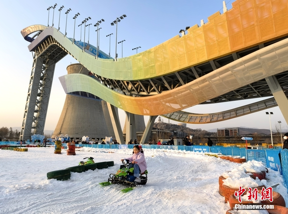 小朋友在“首钢园冰雪汇”内体验游乐项目。“首钢园冰雪汇”是首钢大跳台在北京冬奥会后举办的首个冰雪嘉年华项目,以“相约大跳台,畅游冰雪汇”为主题,让冬奥遗产可持续利用,冰雪热度不断延续。