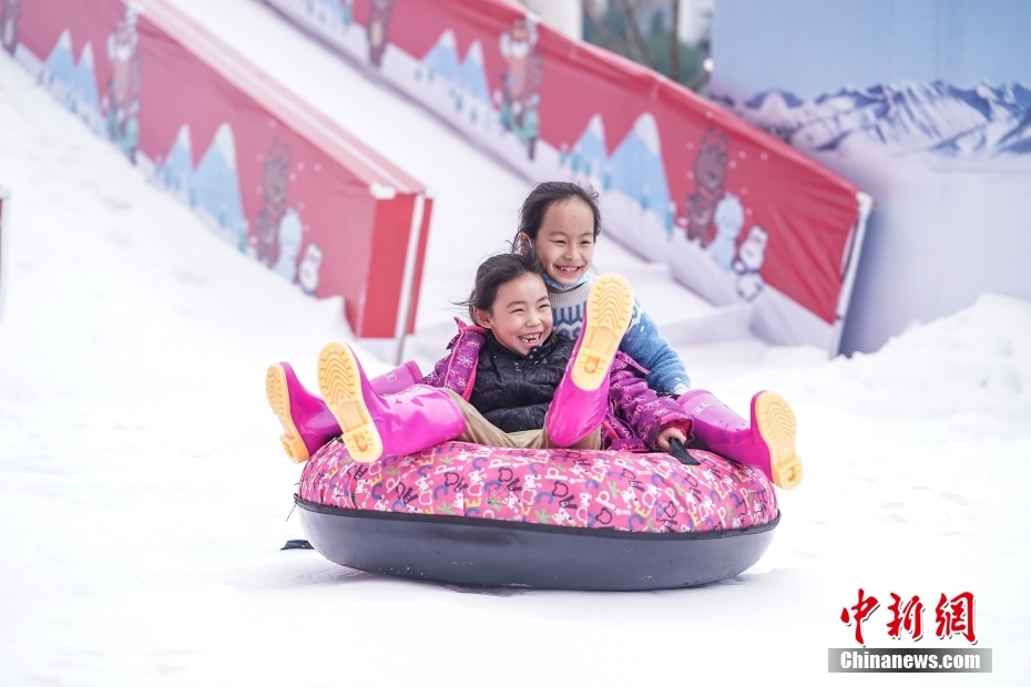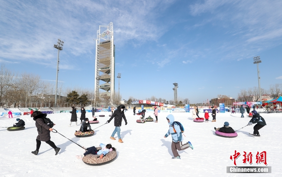 市民来到国家体育场(鸟巢)附场的“鸟巢欢乐冰雪季”,畅享冰雪乐趣,乐享新春假期。