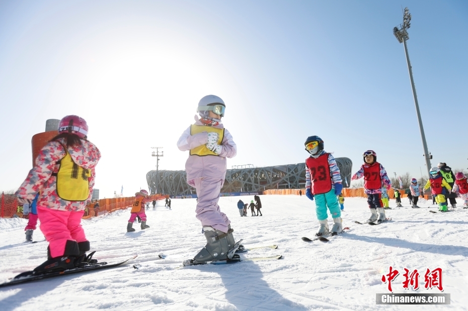 第十二届鸟巢欢乐冰雪季在北京拉开帷幕,小朋友体验“高台滑雪”项目。本届鸟巢欢乐冰雪季在国家体育场(鸟巢)附场3.4万平米的冰雪乐园启幕,共设置了20余项冰雪健身活动。