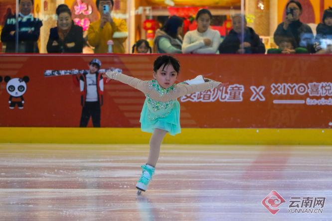 正值立春,春城昆明处处都洋溢着暖意,本次活动的开展,更为春城增添了一曲冰雪运动的青春旋律。活动现场,参与的市民经过冰雪知识培训和参观冰雪运动器材后,迫不及待地换好滑冰鞋跃跃欲试,而冰场内,正在上演一场绝美的花样滑冰表演。欢快的乐曲中,身姿优美的小表演者们时而旋转、时而跳跃,好似一个个灵动的冰雪精灵。在她们中,年仅5岁的张湉若显得特别可爱,她的母亲介绍:“张湉若接触冰雪刚2年,慢慢掌握了一些初级的花样滑冰技巧,这次特别荣幸和自豪能够在活动中表演,对她来说是一种认可。最初是自己喜欢冰雪才让孩子学习,看到孩子能沉浸其中、乐在其中,自己非常高兴。冰雪运动不仅好玩,而且能激发孩子运动和艺术方面的能力,在促进身体发育的同时,提升孩子的气质,锻炼孩子的胆量,是非常好的运动。”