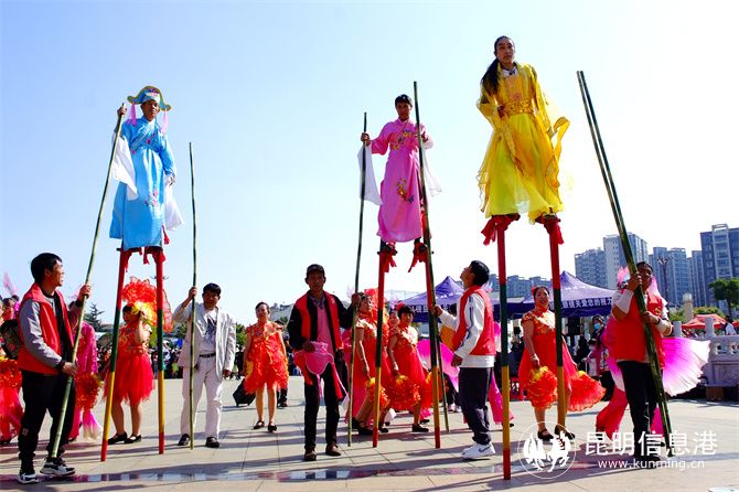 陆良县文化馆引导11个乡镇(街道)的11支代表队,沿爨文化广场起点-爨乡路-大鹏雕塑环岛-同乐大道-同乐广场,开展传统舞龙舞狮等民俗文化巡演。活水乡彝族刀叉舞表达了彝族人民丰收的喜悦心情;小百户镇彝族大三弦热情豪爽让人振奋;芳华镇、板桥镇的舞狮惟妙惟肖,赢得观众阵阵掌声;中枢街道的舞龙队锣鼓喧天,精彩纷呈。此外,旱船、半截马、广场舞、踩高跷等民俗文化巡演,也让观众看得如痴如醉。