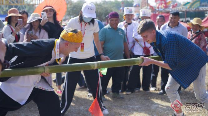 舞场内洋溢着热情奔放的节日气氛,充满了欢歌笑语。舞场旁,社区运动会——大美陇川2023年陇川县第三十九届朋生目瑙纵歌节民族传统体育体验活动成为目瑙场的一大亮点,体验区域内,好看又好玩的民族传统体育体验吸引了不少游客驻足,来自国内外的游客可以在这里尽情体验到景颇族多姿多彩的民族体育文化:爬杆、抵棍、扭棍、篾弹弓……在工作人员的讲解及示范下,跃跃欲试的朋友可不少呢!