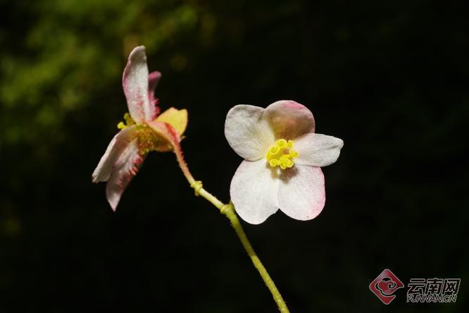 龙陵秋海棠隶属秋海棠科秋海棠属,为多年生草本植物,主要生长在小黑山保护区以双齿山茉莉为代表的中山湿性常绿阔叶林林下,花期一般在每年的8至9月。尤其是龙陵秋海棠黄色的花蕊形似祥云图案,淡粉色的花瓣晶莹剔透,看起来犹如一件天然的花卉艺术品,格外惹人喜爱。
