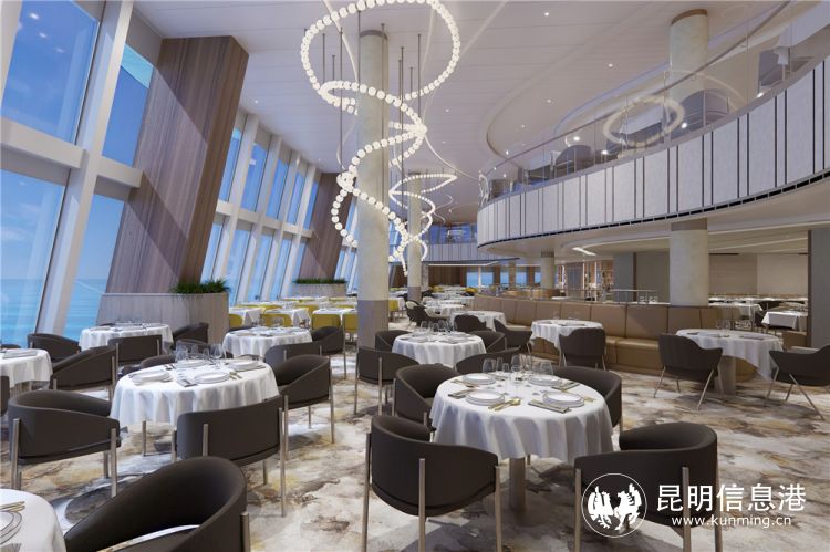 地平线餐厅首次入驻公主邮轮,采用极具震撼效果的三层挑高结构。这个充满创意的空间秉承开放与灵活的设计理念,为宾客提供多元感官体验。波澜壮阔的海上美景和浑然天成的自然光线完美地衬托出从6层一直延伸到8层的装饰性雕塑作品。每层甲板风格迥异,营造出不同的用餐体验和氛围。