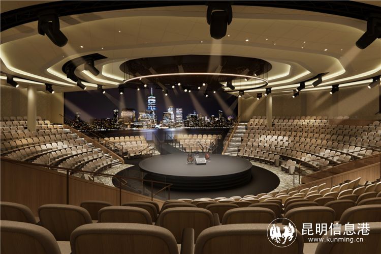 公主圆形剧场是一座与时俱进的现代多功能剧场,采用最先进的公主剧院设计。当宾客步入剧场,就会被中央舞台上方极富冲击力的视觉效果所震撼,更好地渲染和烘托出表演氛围。全新的天花板设计与圆形剧场完美融合,弧形软墙寓意着起伏的海浪。剧场采用活动座椅,可容纳1,000多名观众,三种座位布局方式可最大化满足宾客视线,同时技术赋能带来更加引人入胜的观赏体验。