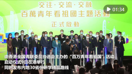 由香港全国青联委员协进会主办的“百万青年看祖国”活动启动仪式9日在港举行,同时发布内地30省份研学精品路线。香港青年组织与内地各地代表会聚香江,鼓励香港青年积极把握国家发展机遇,促进香港与内地青年交流。