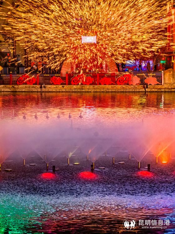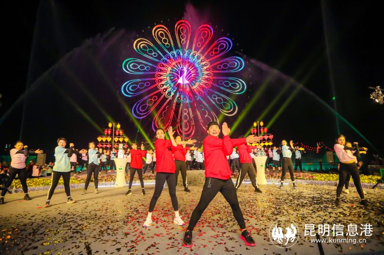 当天晚间,在春风和美的南滇池之滨,云南著名舞蹈艺术家杨丽萍助阵,全民健身达人刘畊宏带着妻子为广大热爱户外健身运动、热爱健康生活方式的人们带来一场“文旅+健身”户外直播。随着荟萃东北大秧歌、手绢舞、踏鼓舞演艺的《鼓动新春》热闹开演,市民游客热情高涨,纷纷参与,用一场畅快淋漓的有氧健身操,开启兔年美好生活。期间,传统非遗技艺“打铁花”在滇池之眼摩天轮下呈现,吸引大批游客驻足观赏。