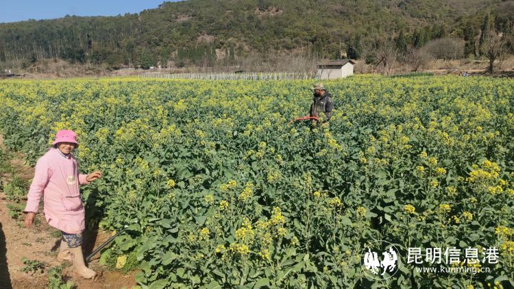 昆明信息港讯 记者杨雁 作为每年开春之际大自然最美的颜色,连片的油菜花海一直是旅游爱好者追逐的风景。如今,一片片油菜花逐渐由绿色变为金黄或者彩色,使螳川大地更显绚丽多姿,空气中弥漫着鲜花的芳香,大片的油菜花和漂亮村居、田间劳作的村民、连绵起伏的绿色山峦交织在一起,如诗如画、美不胜收,令人心旷神怡。