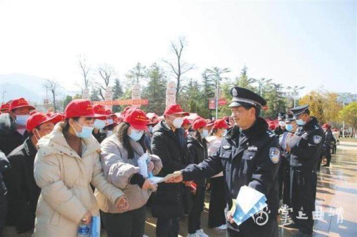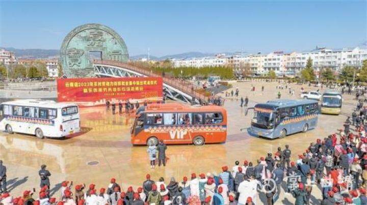 1月29日,会泽县2023年首批5166名外出务工人员在会泽公园集中出发。云南省就业局和会泽县农村商业银行为他们准备了“爱心大礼包”。