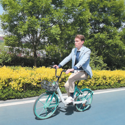 泰瑞尔在太原汾河公园骑行。受访者供图