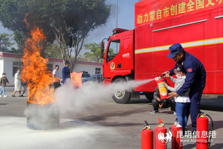 “各位同学,如果发生火灾,应及时拨打‘119’火警电话,迅速报警,报警时要讲明详细地址、起火部位、着火物质、火势大小等。”2月11日上午,在蒙自市级行政中心广场,蒙自市消防救援大队以蒙自市创建第七届全国文明城市动员大会为契机,开展消防安全宣传活动,传播文明新风,助力创文工作走深走实的同时,积极发动各单位场所、广大群众参与到学校消防安全宣传工作中,多措并举、齐抓共管,实现“教育一个孩子,带动一个家庭,影响整个社会”目标。