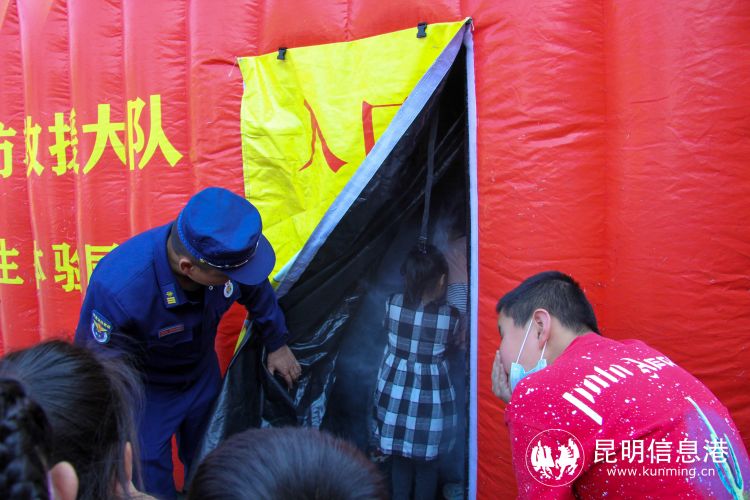在消防员的带领下,孩子们进入火灾模拟逃生屋,一边弯腰俯身,一边手捂口鼻,体验了模拟火场状态下的疏散逃生。“今天在活动现场,我非常开心,我不但认识了消防员叔叔的装备,也知道了消防员叔叔的辛苦和不容易,接下来我会多学消防知识,把我学到的东西告诉同学和好朋友”,参加体验的周弈廷小朋友说道。