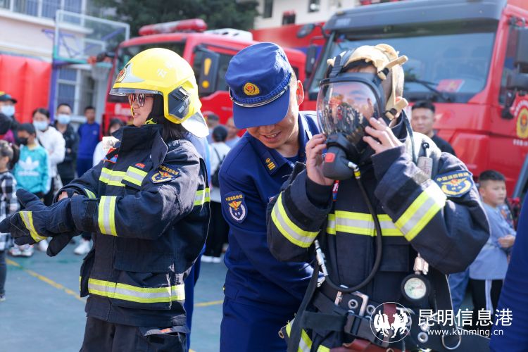 “去到火灾逃生屋里,感觉到了火灾现场非常危险,里面的烟很呛,很黑,这让我体会到了消防叔叔的不容易,所以我们以后要注意防火。”在活动中,眼看着学生和家长们从拘谨慢慢进入状态,大队宣传员在带领大家讲解消防安全知识的间隙,穿插进了消防灭火服试穿、模拟火场状态下疏散逃生等环节,体验各个环节的学生和家长感慨良多。“像我们这样的大人,没有经过专业训练,穿起来很热、很重,穿进去的感觉就是非常不好受”。
