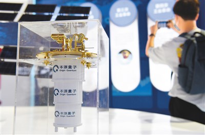 在2022世界制造业大会上,合肥本源量子计算科技有限责任公司展出的24比特超导量子计算机模型。新华社记者 周牧摄 |