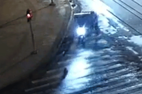 发现一个布袋掉在了人行横道上