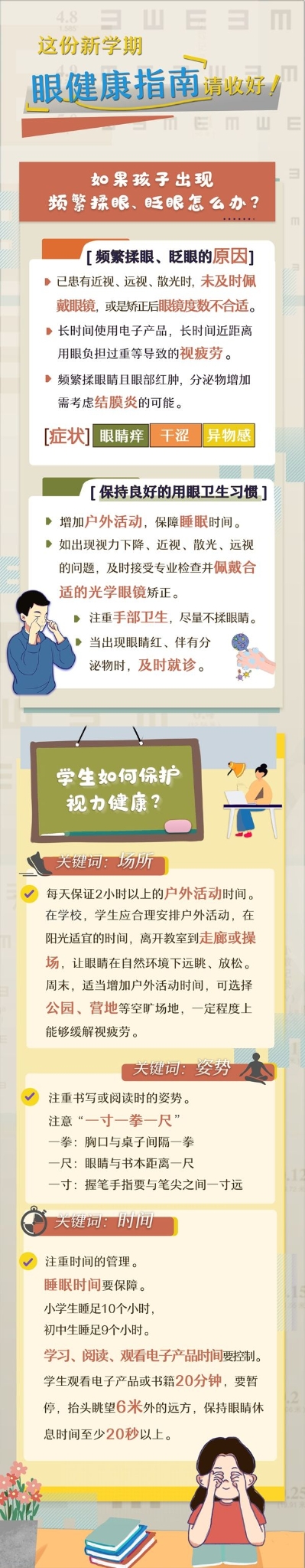 随着新学期的到来,孩子的视力问题受到不少家长的关注。孩子频繁揉眼是怎么回事儿?日常用眼应该如何保护视力健康?让我们一起听听眼科专家的开学护眼小贴士。