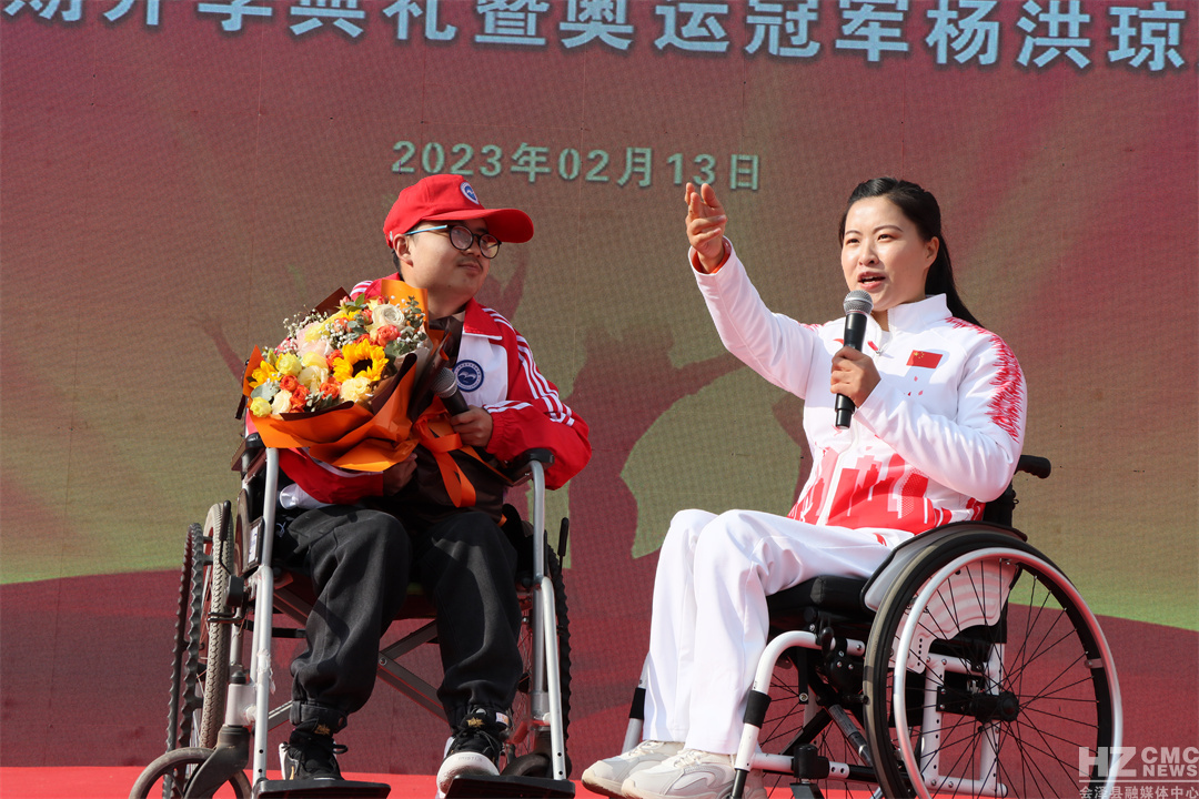 2月13日,会泽县茚旺高中举行春期开学典礼暨励志报告会,邀请2022年云南省残奥冠军杨洪琼到现场为茚旺师生作励志报告。