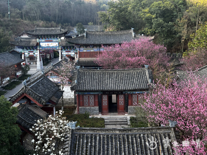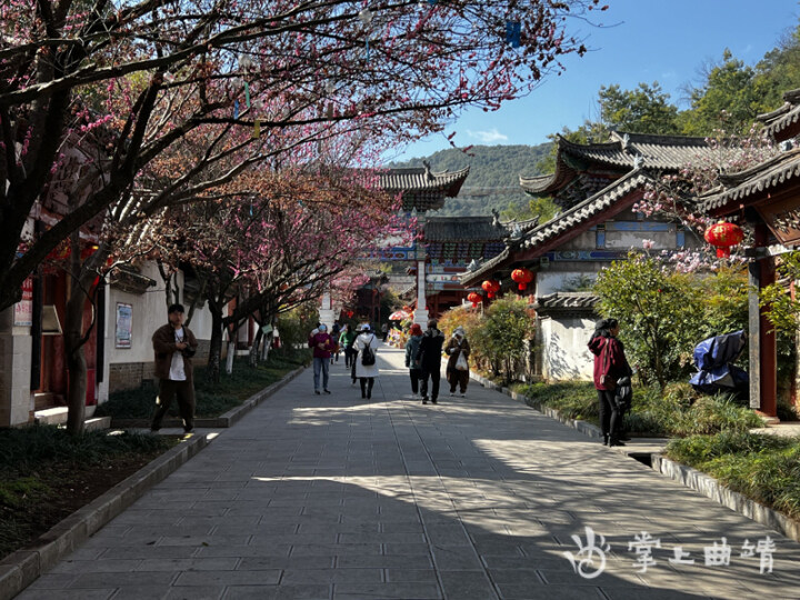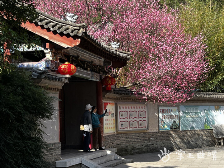 进入2月,春光明媚,麒麟区翠峰山影视城的梅花竞相开放。