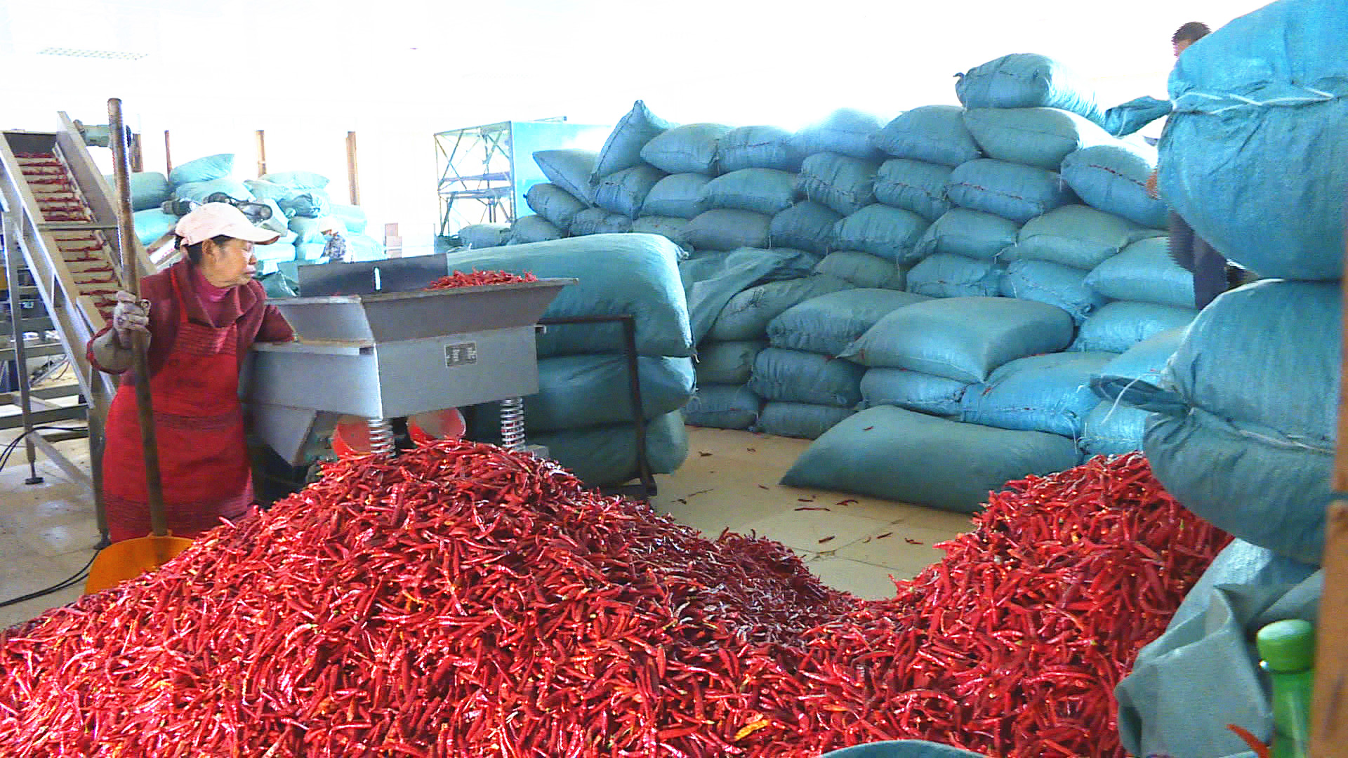 在丘北县汇香源农业发展有限公司里,机器轰鸣,一条条生产线在高速运转,工人们正在有序地把装满货车的辣椒原料往车间运,在车间里,工人正忙碌而有序地分炼、质检、加工辣椒原料,大家开足马力,全力拼经济、抓发展。